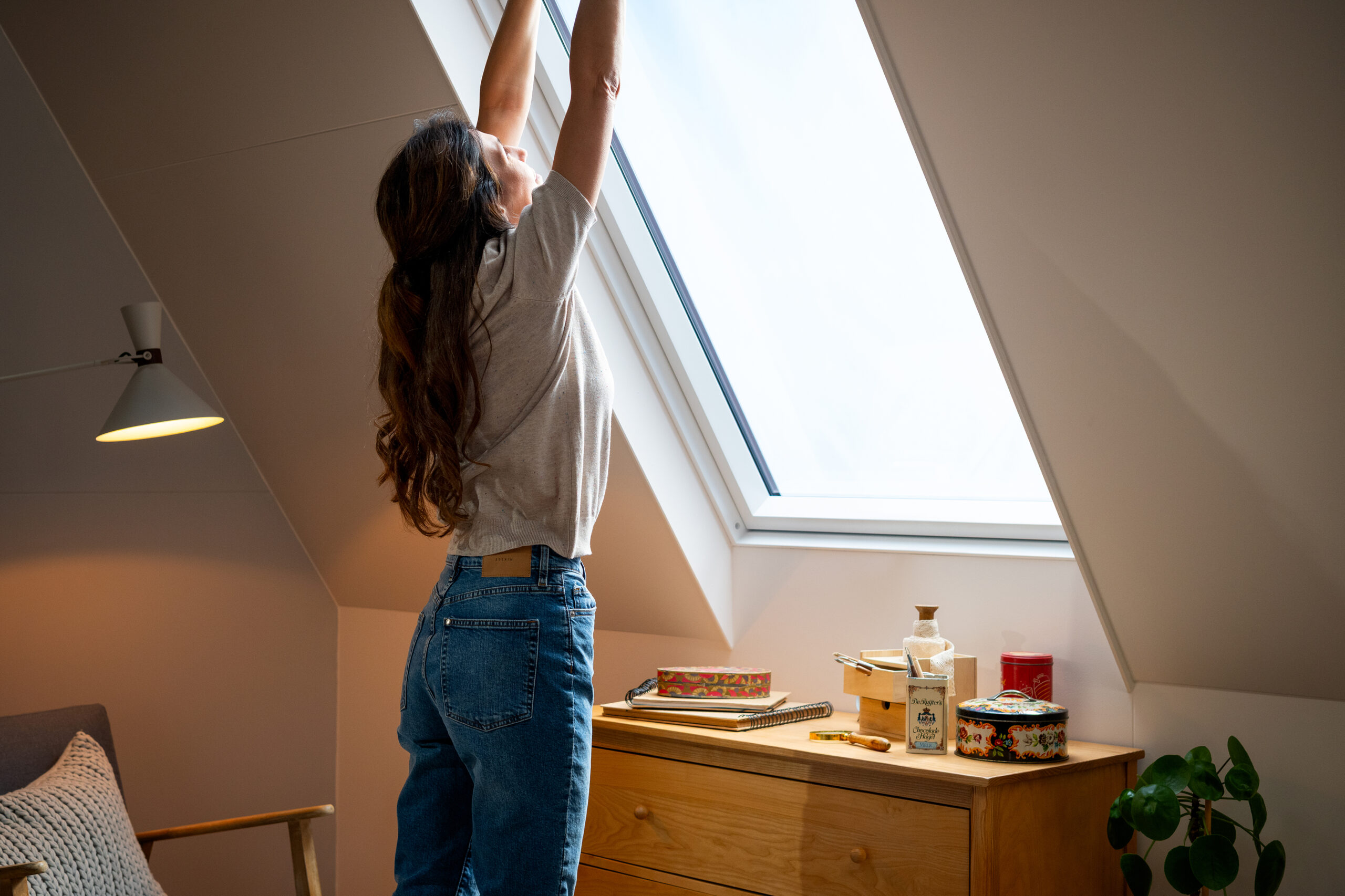 Een dakraam zit vaak wat hoger in het dak. Dat is logisch, zo ontstaat ook de mooiste lichtinval. Maar hoe logisch is het dan om een handgreep bovenin te plaatsen? Om even wat frisse lucht binnen te laten moet je dan al snel hoger grijpen, op je tenen staan of een krukje erbij pakken. Niet bepaald gebruiksvriendelijk. Gelukkig is er een eenvoudige en heel slimme oplossing die het leven onder een schuin dak een stuk aangenamer maakt: de handgreep aan de onderkant. Zo simpel kan het dus zijn.
