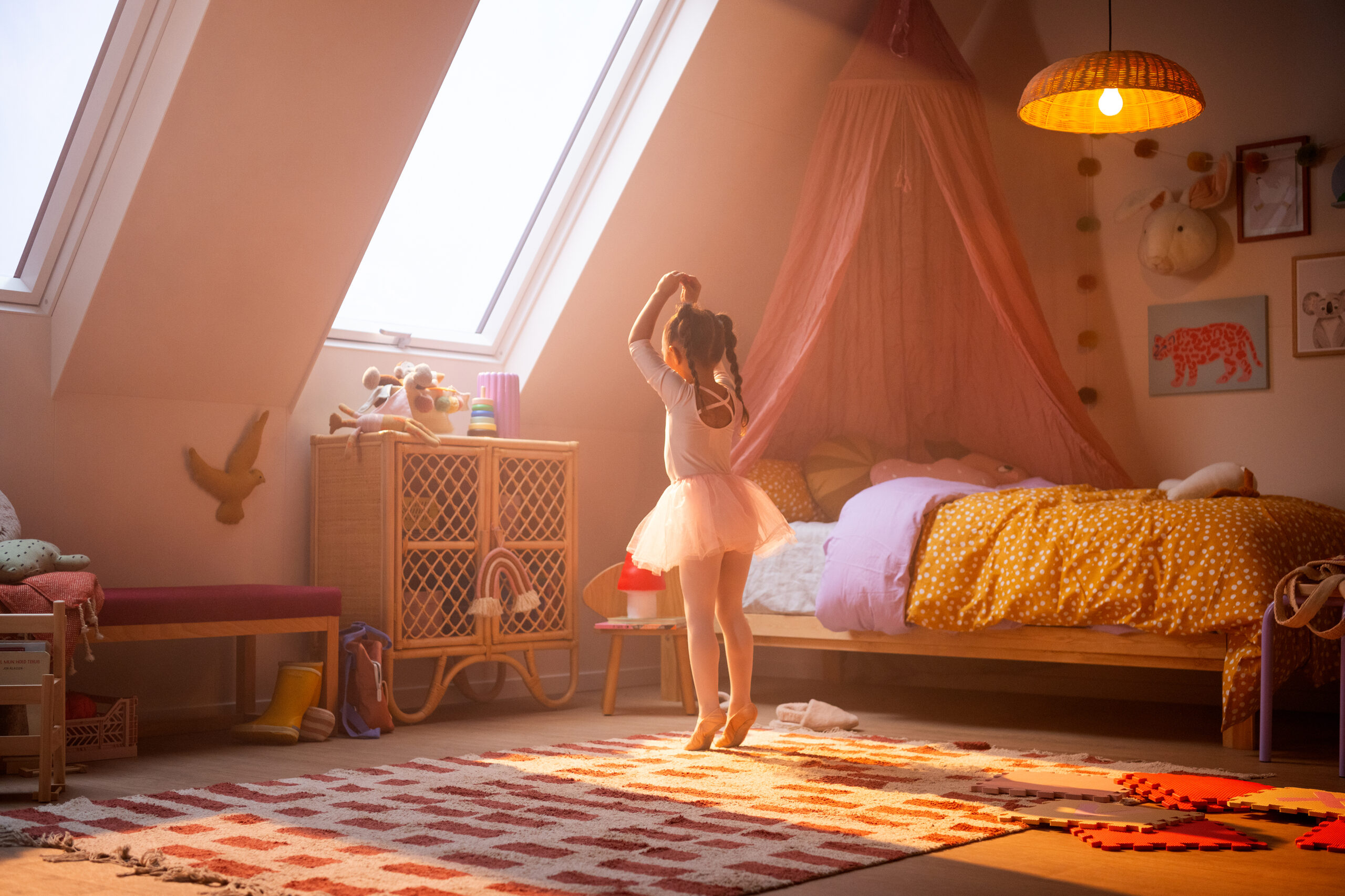 Bij dakramen van FAKRO zit die handige handgreep standaard aan de onderkant. En om dan ook maar direct antwoord te geven op een begrijpelijke vraag “Is dat dan niet juist makkelijk voor kinderen om het raam te openen?”; in de praktijk blijkt dat nauwelijks het geval te zijn. De handgreep zit gemiddeld rond de 110 cm hoogte. Voor de meeste jonge kinderen is dat simpelweg nog buiten bereik. En zelfs áls ze erbij kunnen, is er nog een extra geruststelling: de kierstand. Zet je het raam in deze stand, dan kan het niet zomaar verder open terwijl de ruimte wel lekker verfrist wordt. Zo combineer je ventilatie met veiligheid, zonder dat je constant een oogje in het zeil hoeft te houden.